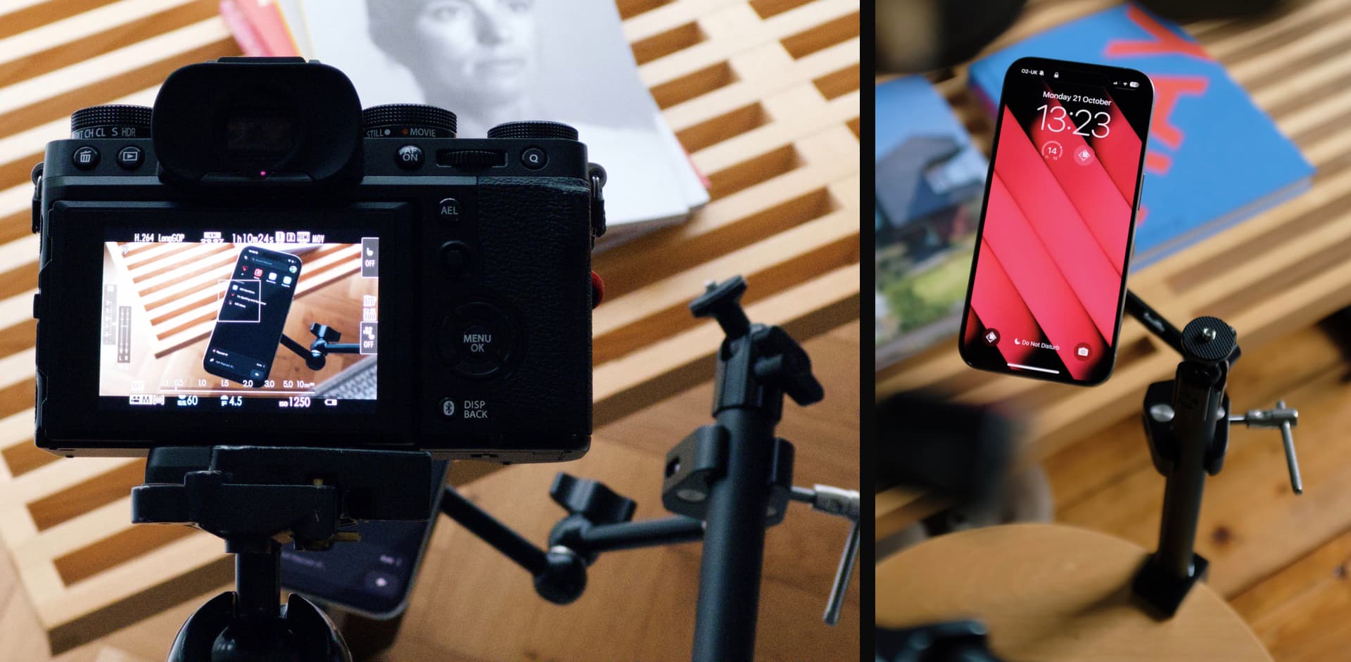 In the below example, even though I'm focusing on the detail of the recording UI, I went handheld. In this scene it works because I'm showing how effortless the interaction is, and it's perfectly placed for my thumb without blocking any important details.